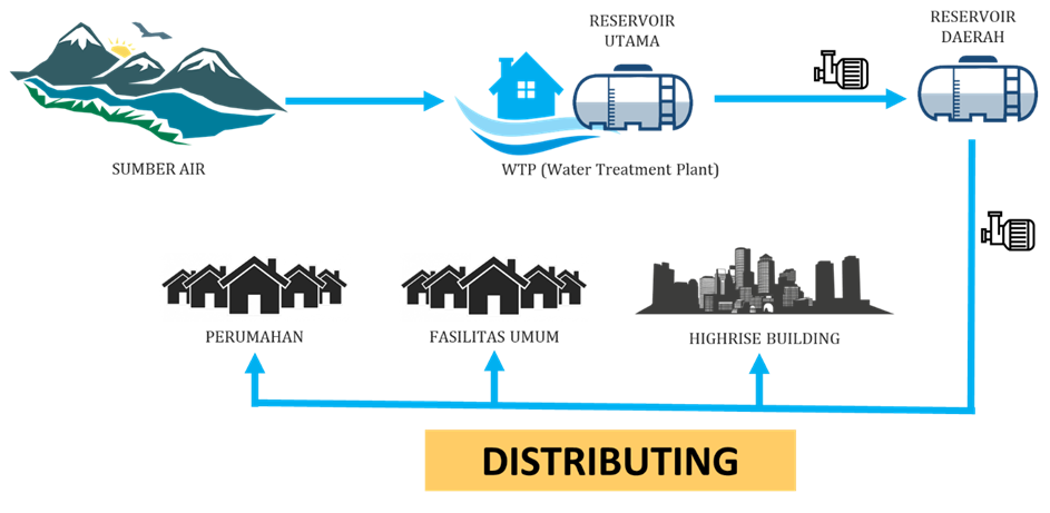 Air yang sudah selesai diolah oleh PDAM nantinya akan ditampung pada reservoir daerah sebelum dialirkan ke pengguna. Untuk memastikan kebutuhan sesuai dengan kualitas dan kuantitas yang dibutuhkan, maka diperlukan perhitungan yang tepat dalam prosesnya, termasuk pada saat pemilihan pipa untuk mendistribusikan air bersih agar sesuai dengan debit yang diperlukan. Salah satu pipa yang mampu mengoptimalkan distribusi air bersih adalah pipa Rucika Exoplas yang dibuat dari pipa Polyvinyl Chloride dengan metode biaxial yang menghasilkan dengan ketebalan dinding pipa lebih tipis dibandingkan uPVC biasa, sehingga mampu mengalirkan debit air lebih banyak.