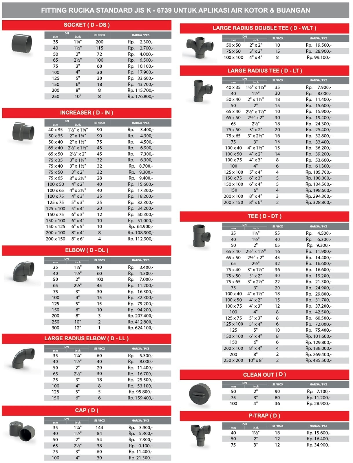 The post Daftar Harga dan Ukuran Fitting Sambungan Pipa Desember appeared first on RUCIKA.